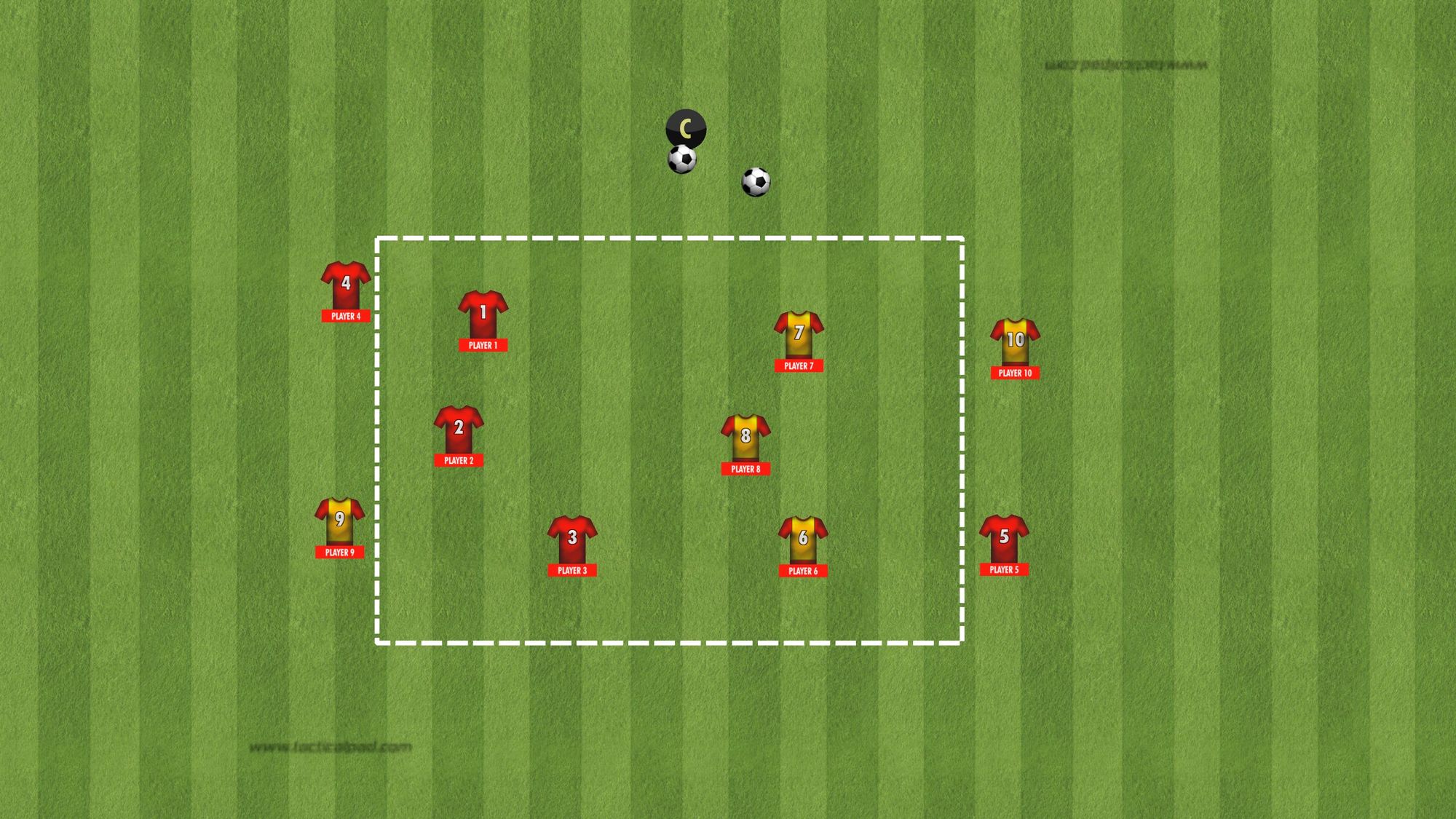 Uppgiften är att passera motståndarna med bollen.